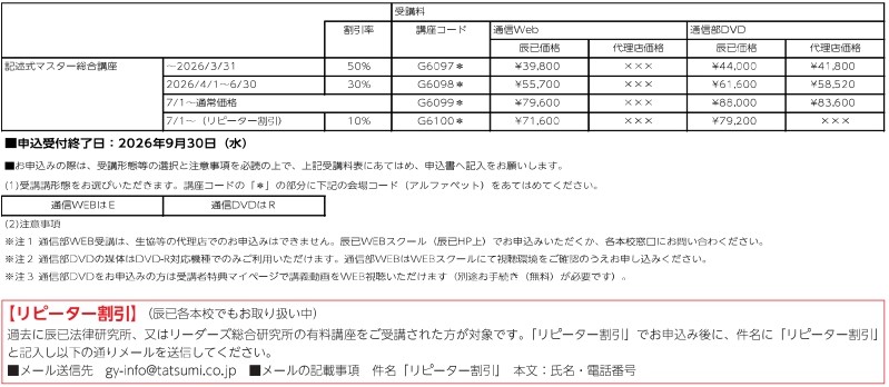 講座のお申込みは、辰巳法律研究所にてお願い致します。