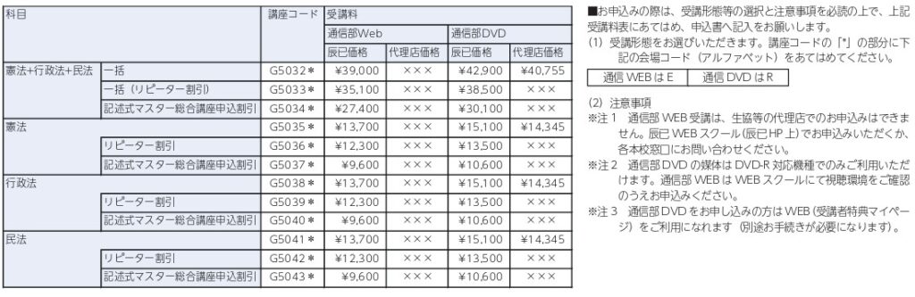 ①「辰已法律研究所&リーダーズ総合研究所」の有料講座受講生(2024年対策・2023年対策/ 全国公開完全模試も含む)受講生は講座を10%割引でご受講になれます。)